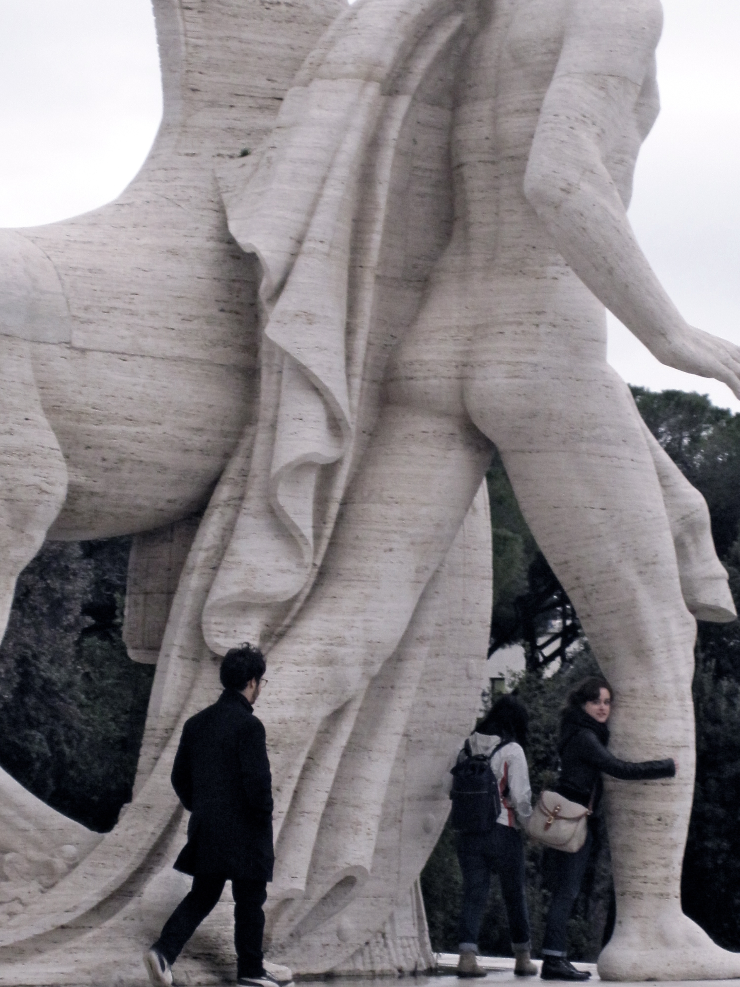 These photos are from Rome’s southern district of EUR (Esposizione Universale Roma) which began to pop up slowly around 1938, originally dedicated to the projected world’s fair of 1942. As nice as that sounds, this would also have been the 20th anniversary of the beginning of the Fascist era in Italy. Hooray! Mussolini and a team of fascist architects are to thank for the construction, as the plan was to move Rome’s urban expansion south-west to evidentially create a new modern city center. World War II got in the way, the fair never happened, and the project was at a halt uncompleted by 1942– it wasn’t until the 1950’s and 60’s until the original buildings were fully completed.