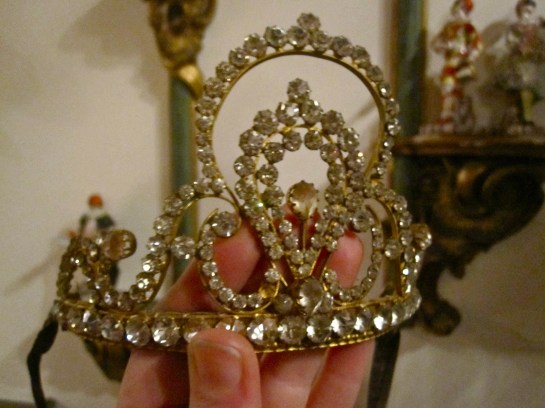 While I was having one of the best Christmas holidays ever of all time in Calabria with my roommate Luisa and her BEYOND WONDERFUL family (EATING AND EATING AND EATING and listening to the sea and EATING), I was lucky enough to be shown these amazing pieces of costume jewelry, lovingly kept and almost perfectly preserved. Luisa’s great grandmother with the same first name, Luisa Broggi, was a famous Italian soprano, alive and kicking roughly one hundred years ago. The family house was originally built just for her, and old photos of Signorina Broggi remain to hang on the walls of the dining room. These pieces belonged to her.