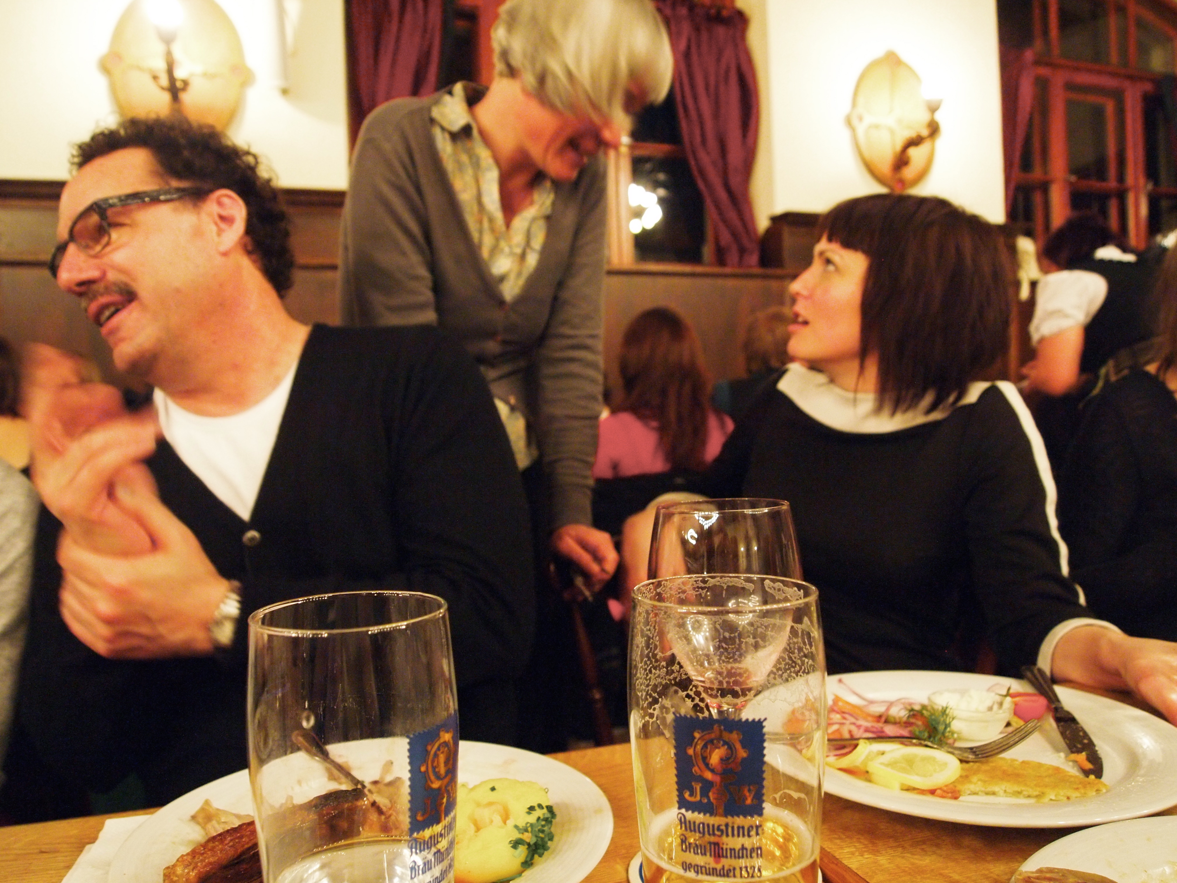 Peter Skubic at the beer hall, slinging some of his pieces over pretzels (out of a tupperware !)