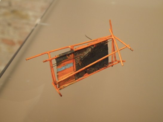 Let’s break the work down a little bit. Like Galindo, Castellón uses the same sort of unconventional display- a big case with a glass top you look down into with the work sitting on red velvet. Classic. It is indicated as an installation, similar to Galindo as well. In each of these cases, the artists are both making choices. They feel that choosing what I and other contemporary jewelers would call a fall back, a last resort, an “isn’t there anything else we can use?” type presentation standard, to aid in their message that maybe we should be associating these things to precious objects… ornament…….. jewelry.