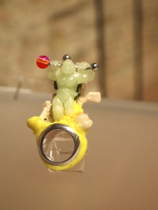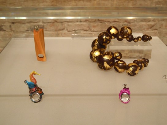 This exhibtion, described as a “living” intallation of international contemporay jewelry, focused on dichotomies of uniqueness/seriality, value/economy, etc…