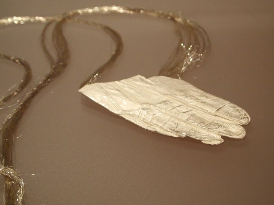 The show’s specific theme of violence meant that most of the included work had a strong and central tie to the physical body, an obvious fundamental seen in the most interesting works within  conceptual jewelry practice. Although much less visually linked on an obvious scale, I found Galindo’s prints, No perdemos nada con nacer (2000) to be similarly relevant. Like Khan, the use of photo documentation as an effective tool for reading the work remains to be underutilized in works in jewelry artworks. Here we can take note and follow the example of how Galindo gives her work a very specific environment that without which would fail to mean much of anything.