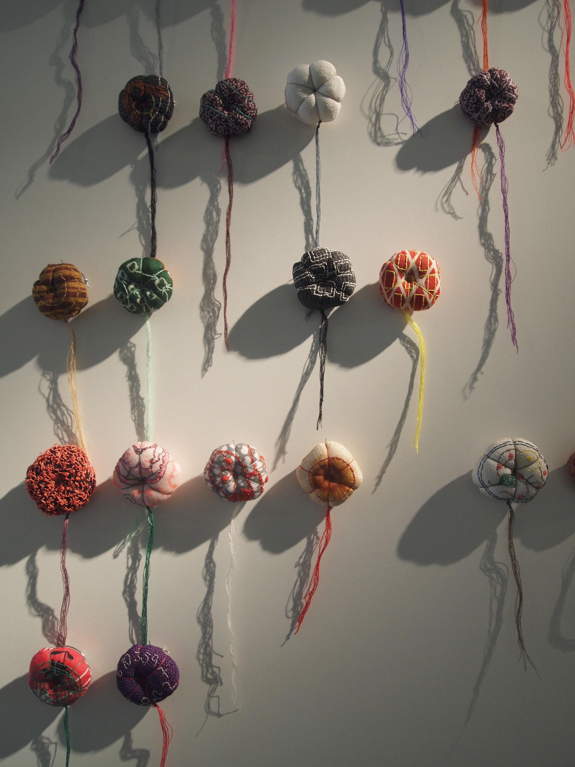 An initial critique of Lee’s collection would be to say that the presented work feels a bit redundant, or could have been pushed further. Before drawing this conclusion however, it is well worth looking through her published book that each graduate was required to provide as an accompaniment to his or her collection. The books are worth mentioning; some are able to enhance the shown work, as in the case of Andrea Coderch Valor (Spain). Hers is able to enlighten the viewer as to the true intention of her 150 pillowy-sewn flower brooches, each made one day at a time over the course of six months for one specific person. Coderch’s story is half the work itself; her book provides depth and closure to the physical objects installed for exhibition in a grid on its own wall opposite the book display.