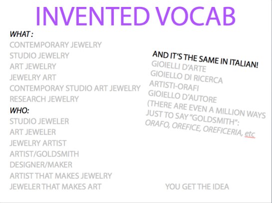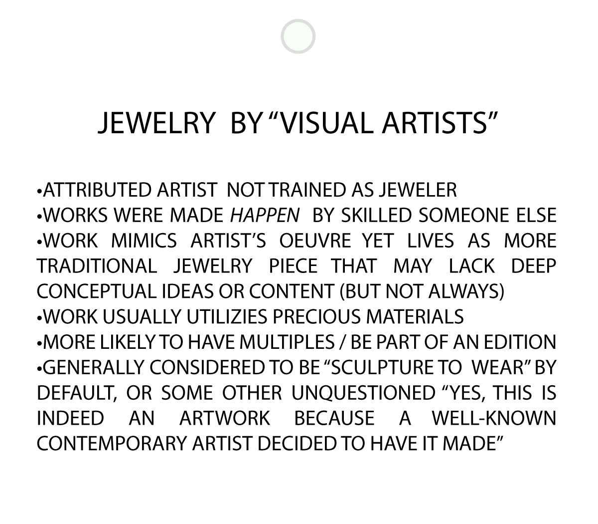 JEWELRY /JEWELERS HAVE BEEN KNOWN TO BE LUMPED INTO THE CRAFT CATEGORY. AND IF IT ISN’T CRAFT, IT’S THE DECORATIVE ARTS, SUPPLEMENTAL ARTS, MINOR ARTS, APPLIED ARTS…ETC ETC.