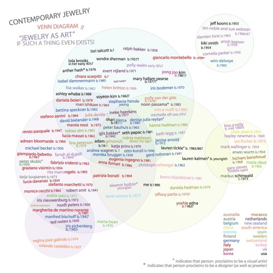 THE FOLLOWING IS A DIAGRAM THAT I HAVE INVENTED, INCLUDING CATEGORIES THAT CONTEMPORARY JEWELRY ARTISTS ARE WORKING WITHIN TODAY.